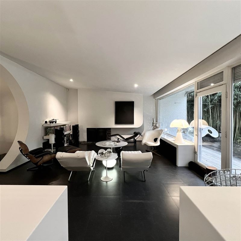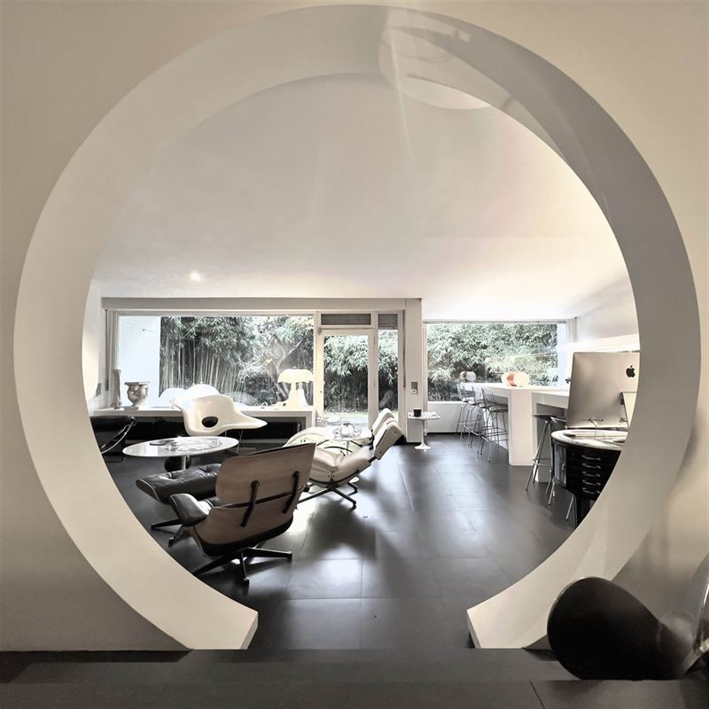 Belle situation à Uccle, à proximité du Dieweg et du Lycée Français. Description : Rare sur le marché. Cette maison d'architecte 4 façades construite dans les années '60 ne peut vous laisser indifférent. Une maison carrée toute en rondeur. La maison se développe quasi sur un seul niveau, avec quelques marches de dénivellation entre les réceptions et la partie nuit. En plus de son volume construit actuel, une extension est possible à l'étage, afin d'obtenir au total 5 chambres, ce qui augmenterait considérablement les possibilités de la maison. Comprenant : Niveau 0 : +/- 160m2- Au sol Pierre bleue recomposée. Beau hall d'entrée avec vestiaire et wc séparé. Séjour de 48m2 donnant sur la terrasse de 30m2 et le jardin orienté sud ouest. La cuisine est ouverte et super équipée avec salle à manger intégrée. Chambre principale de 22m2 + dressing et accès à une salle de bain de 15m2 avec wc séparé et dressing 2 autres chambres de 20 et 12m2 avec une deuxième salle de bains. Niveau -1 : +/- 80m2 Garage 1 voiture, transformé actuellement en chambre ou bureau. Salle de douche. Local technique avec nouvelle chaudière (gaz) et adoucisseur d'eau. Extension possible au niveau du premier étage, en créant un volume supplémentaire de 80m2 + une terrasse de 58m2. Cet étage pourrait facilement accueillir 2 chambres supplémentaires, ainsi que les sanitaires nécessaires. Photo de la maison avec extension en image de synthèse.