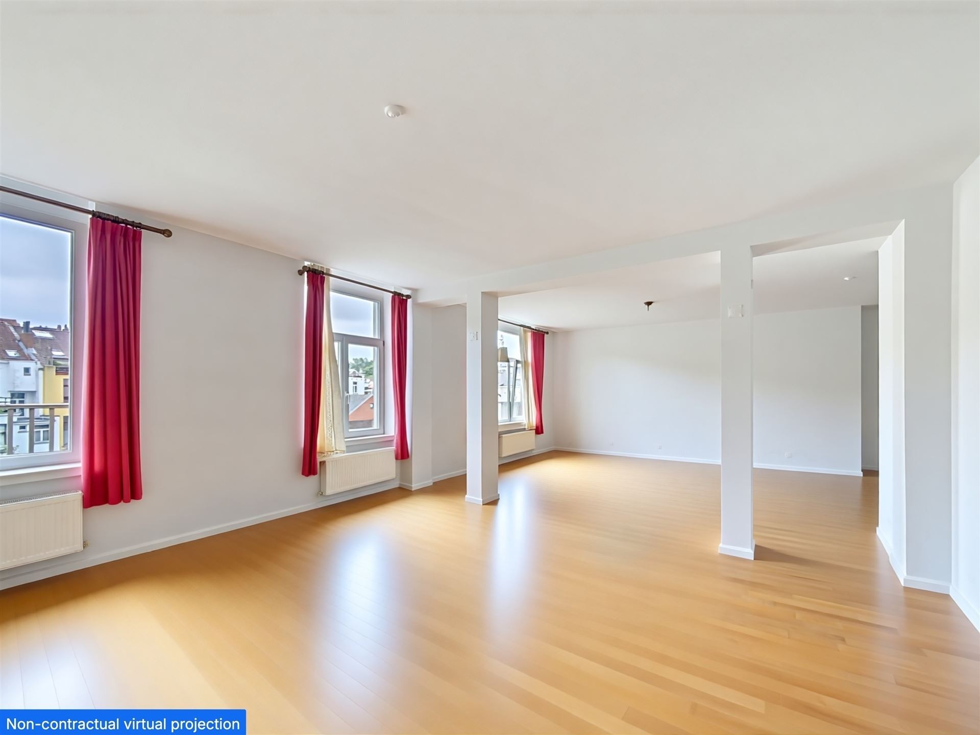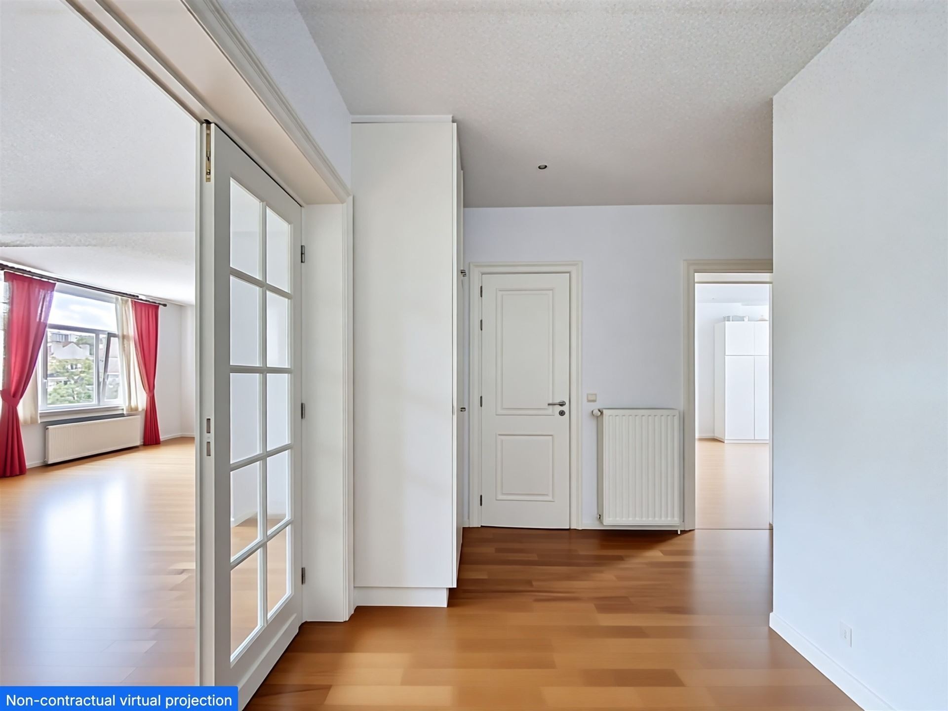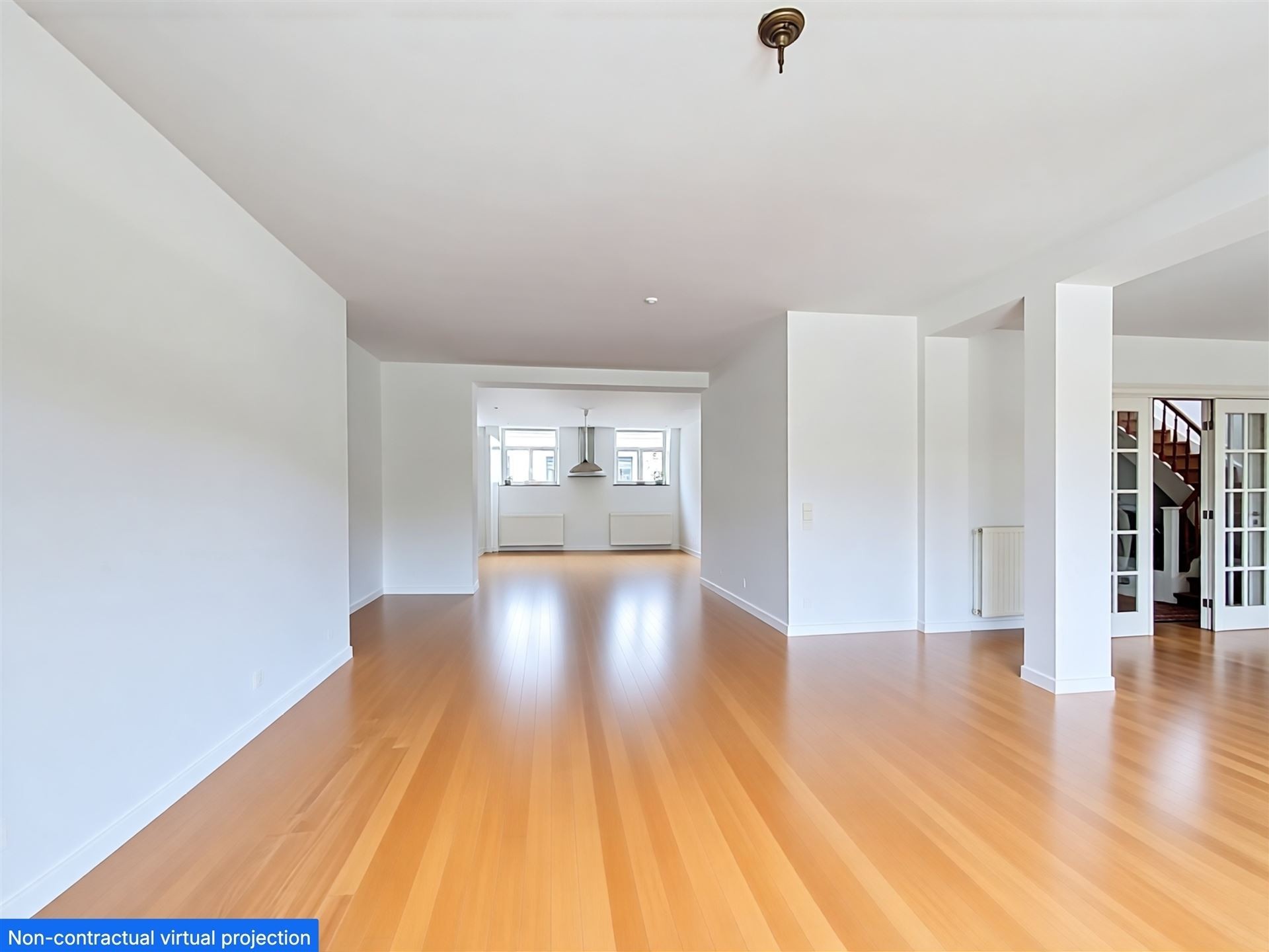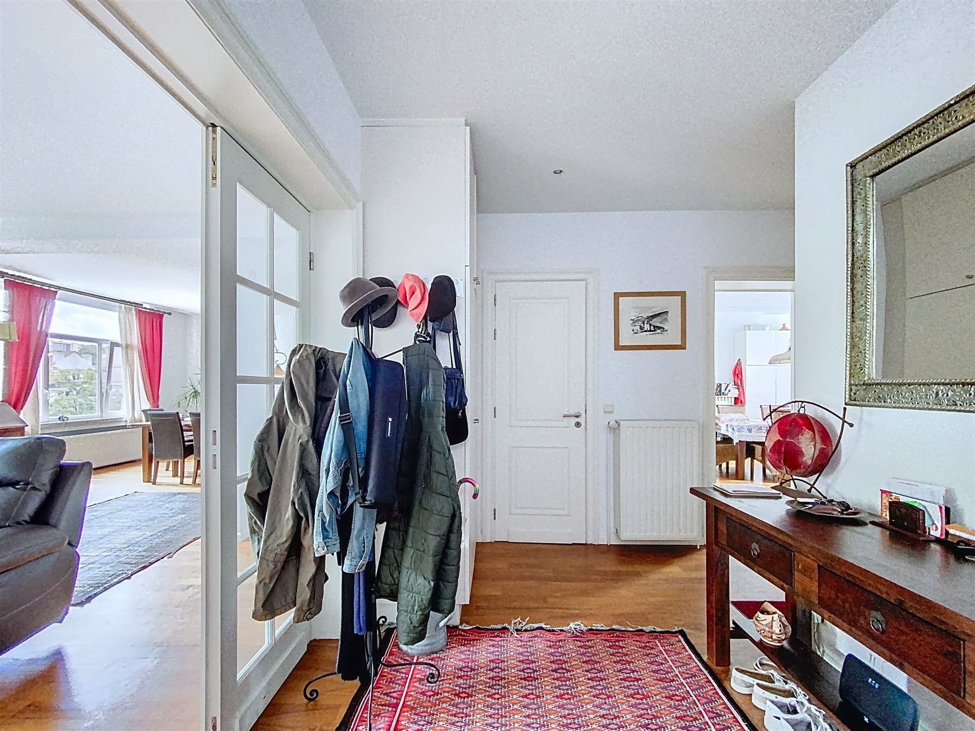 Comprenant : Premier niveau - troisième étage : Hall d'entrée avec wc séparé et vestiaire. Ascenseur avec accès direct à l'appartement. Des réceptions avec parquet en L de +/- 90m2 comprenant, deux espaces séjour, dont un avec feu ouvert et accès à une premier terrasse. Salle à manger et cuisine américaine super équipée. Chambre de +/- 16m2 avec salle de douche.