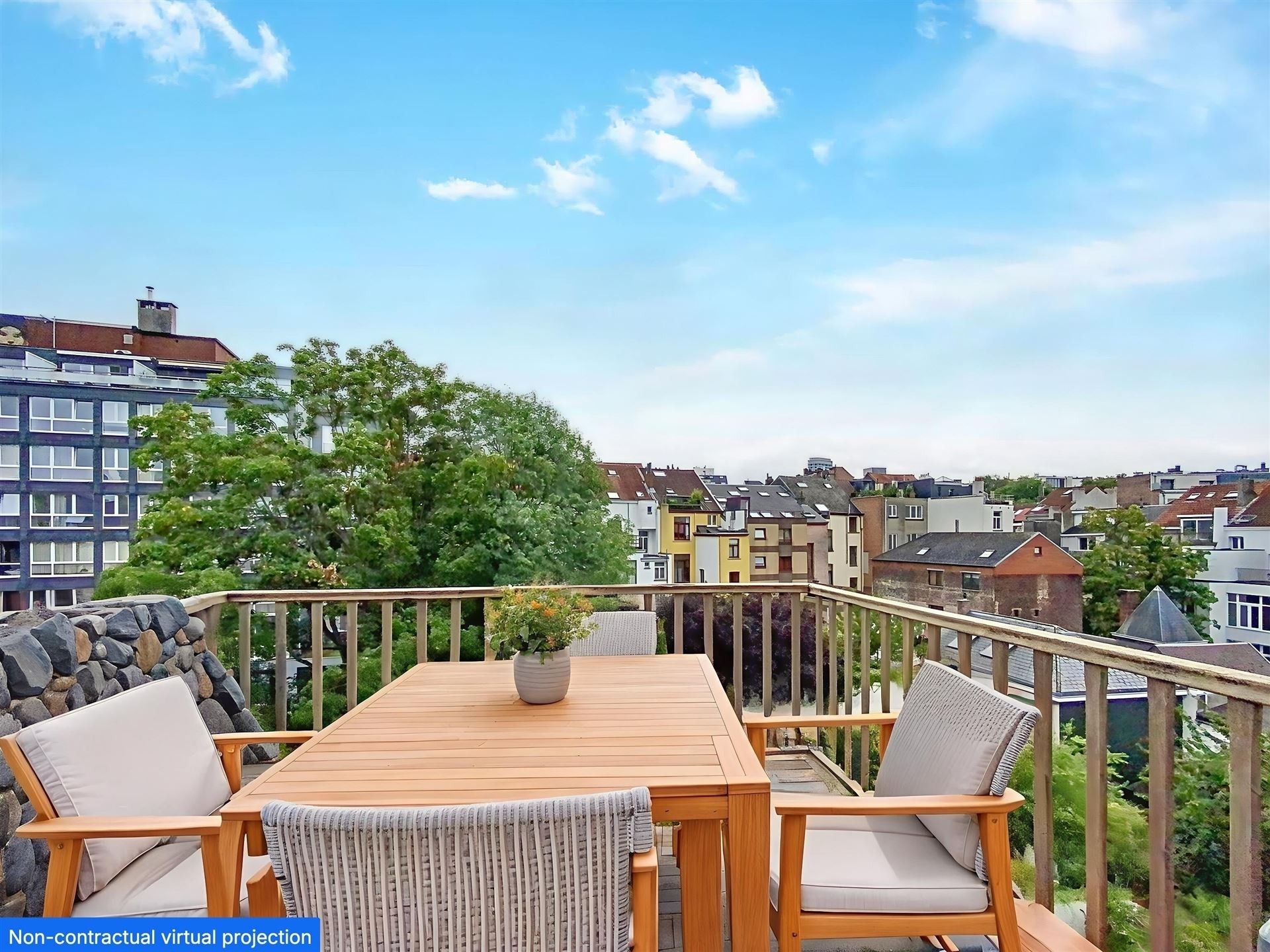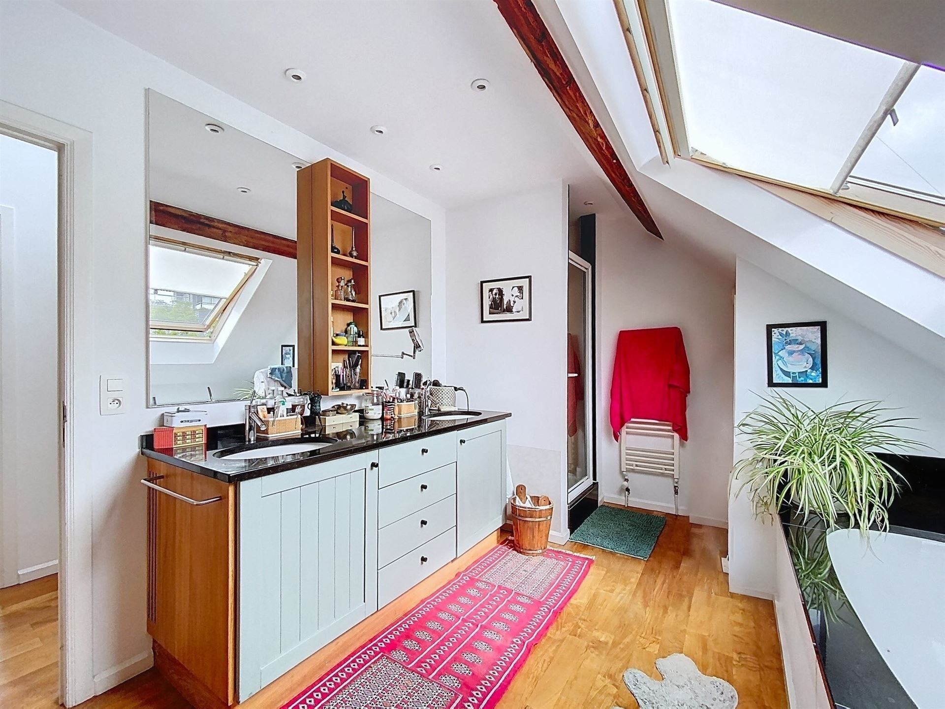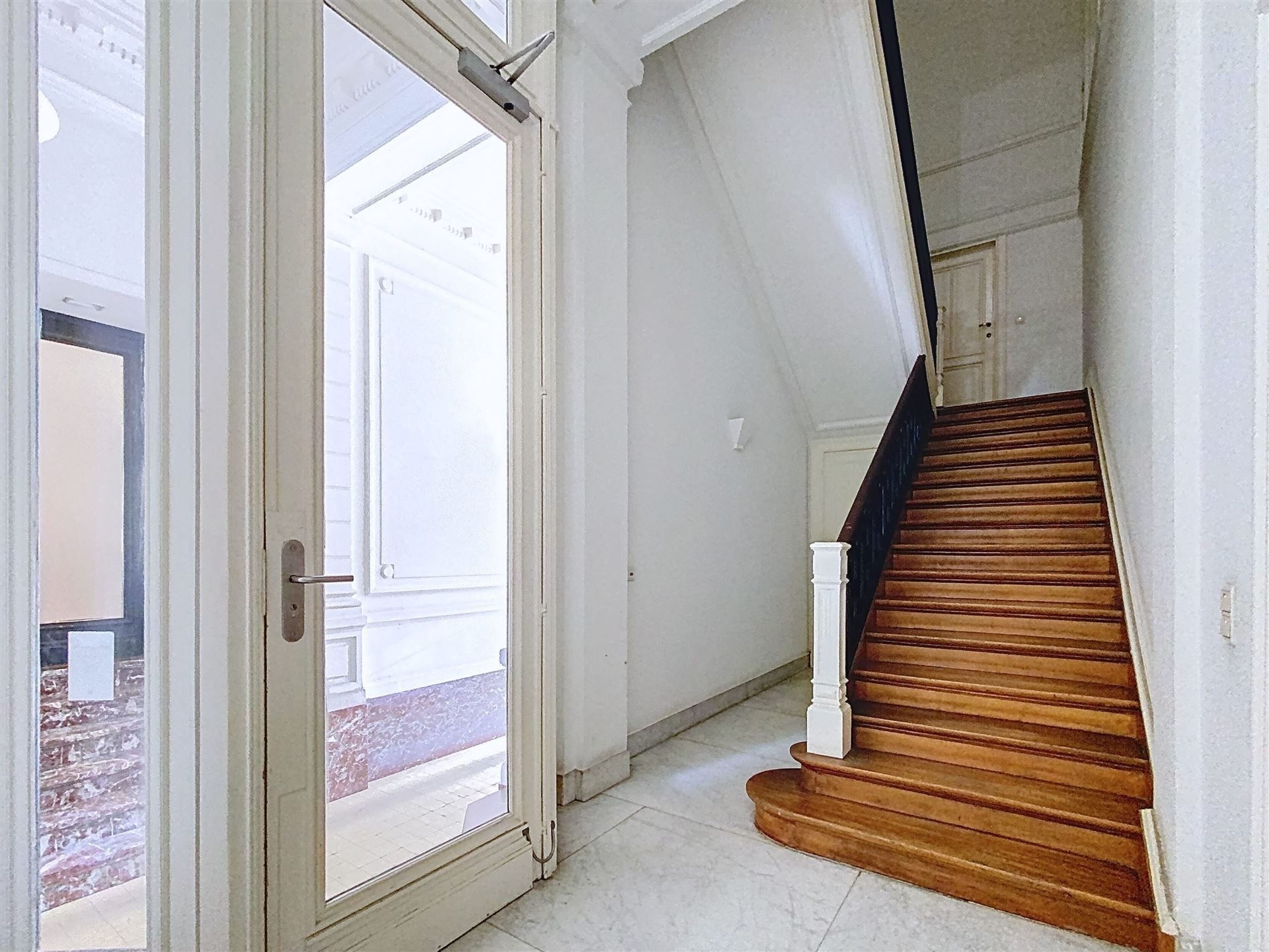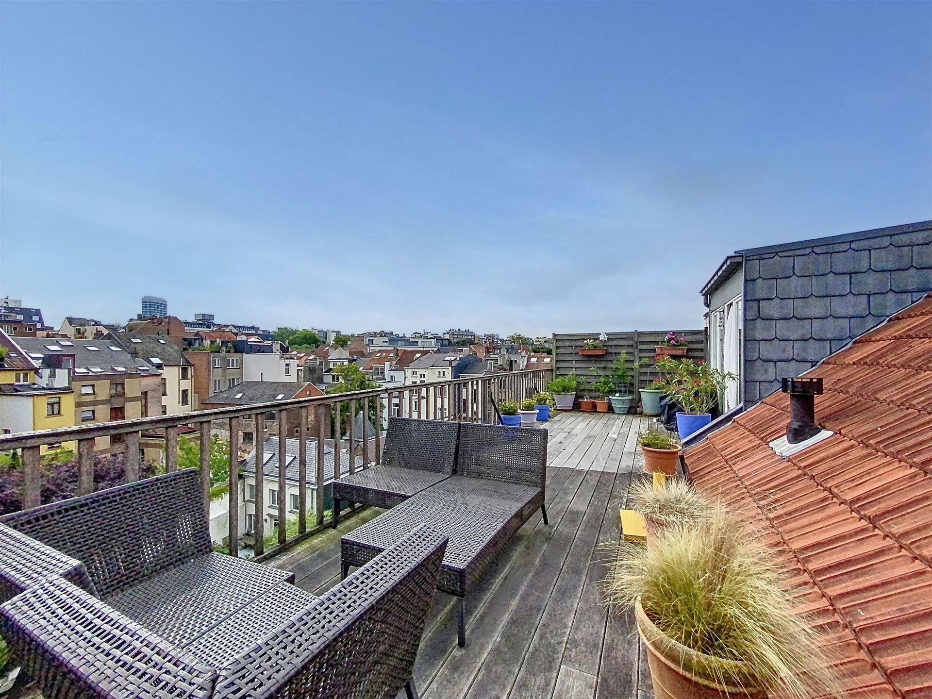 Lumineux duplex penthouse de 197m2 net habitables + terrasses aménagé dans un large Hotel de Maître avec porte cochère. Des grandes réceptions avec cuisine américaine, 4 chambres, 2 salles de bain. Une complète rénovation et transformation de 2004. Petite co-propriété avec ascenseur. L'appartement se situe au troisième et quatrième étage et est agrémenté d'un emplacement de voiture et cave. Comprenant : Premier niveau - troisième étage : Hall d'entrée avec wc séparé et vestiaire. Ascenseur avec accès direct à l'appartement. Des réceptions avec parquet en L de +/- 90m2 comprenant, deux espaces séjour, dont un avec feu ouvert et accès à une premier terrasse. Salle à manger et cuisine américaine super équipée. Chambre de +/- 16m2 avec salle de douche. Deuxième niveau - quatrième étage Chambre de Maître avec placards de +/- 17m2 donnant accès à la grande terrasse de 30m2 Salle de bain avec double lavabo, bain et douche, et wc. 2 autres chambres de +/- 15 et 12m2. Espace chaufferie. Divers : Grande cave de +/- 20m2 Un emplacement de voiture dans la cour arrière ( accès via porte cochère ) Nouvelle chaudière à condensation Vaillant Ecotec Plus VC 306