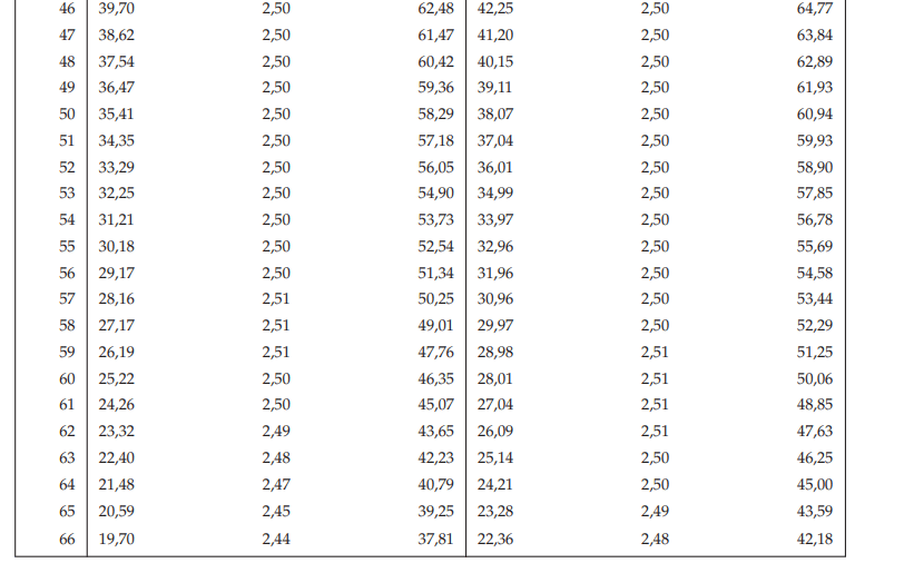 Ces tables de conversion expriment la valeur de l’usufruit en pourcentage de la valeur de la pleine propriété en fonction des tables de mortalités prospectives belges publiées annuellement par le Bureau fédéral du Plan. Elles sont établies séparément pour les hommes et les femmes.